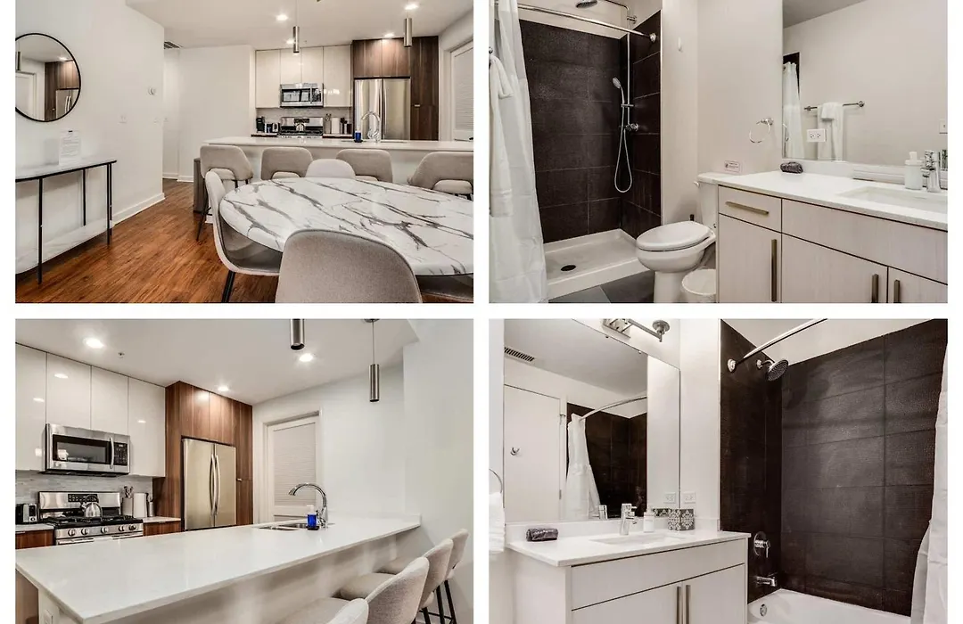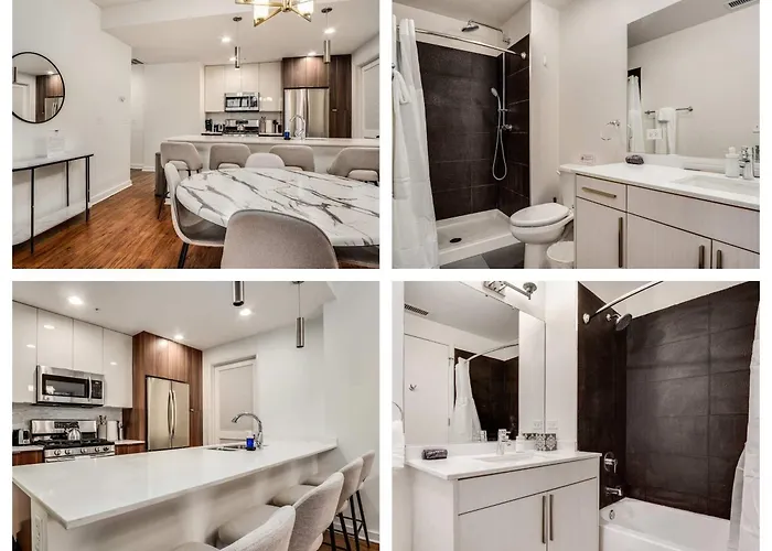 O apartamento Boulevard Stays 5 Mins To Riverwalk & Mag Mile 03 também possui cozinha equipada equipada com forno e máquina de lavar loiça. O apartamento Boulevard Stays 5 Mins To Riverwalk & Mag Mile 03 está nas proximidades da paragem Walton & Clark.